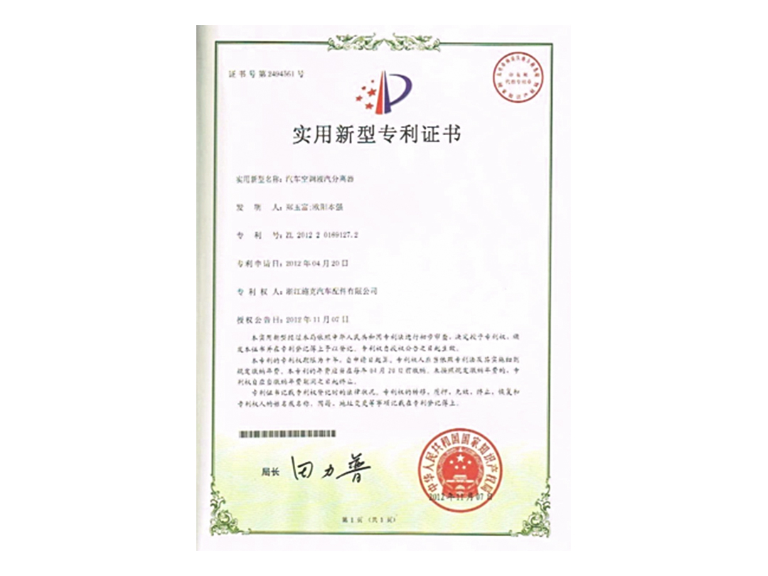 實用新型專利證書